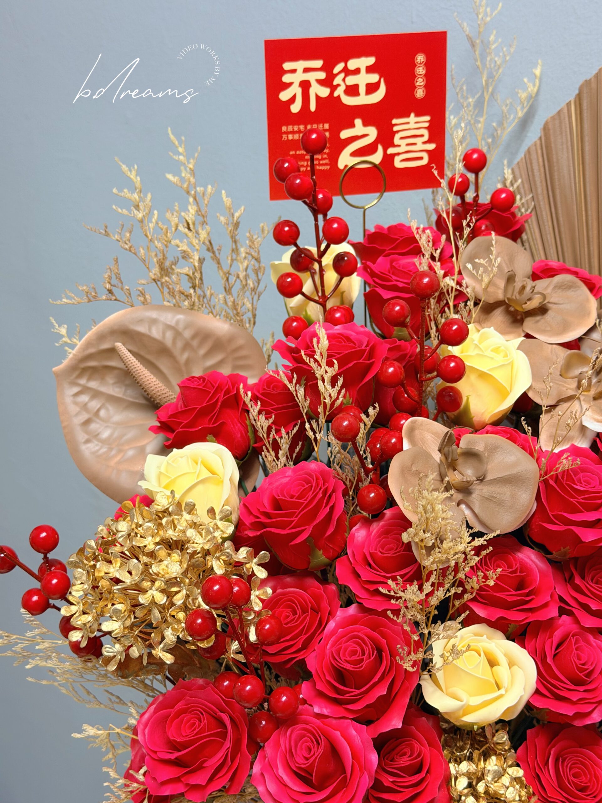 以寓意吉祥的花艺搭配温润色调,象征乔迁之喜、万事顺意。一屋生花,满室添福,是送给新居入伙、开门纳吉的理想祝福之选。