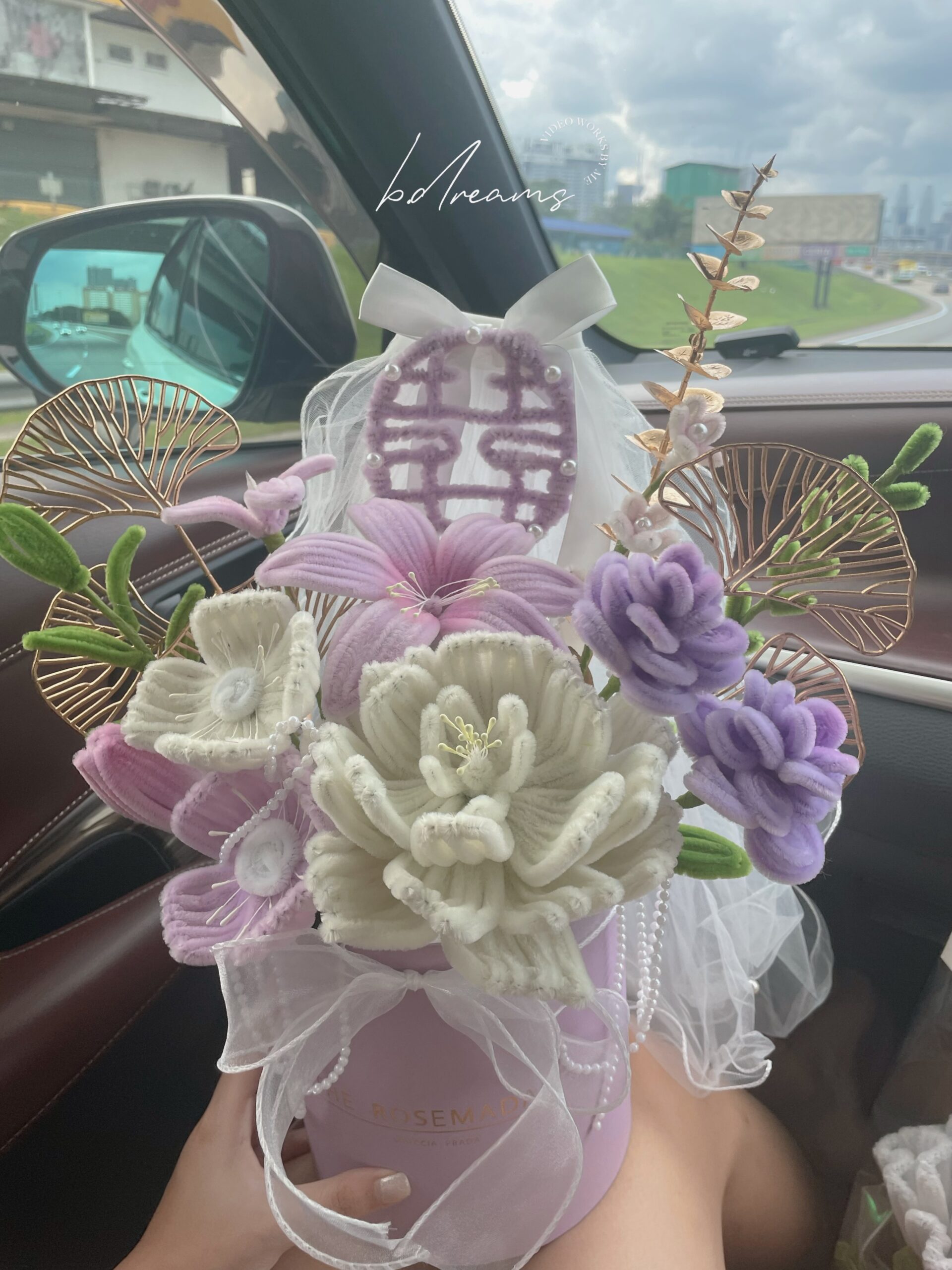 以可爱抱抱造型搭配扭扭棒设计,融入新婚主题花艺,象征甜蜜相伴与幸福永恒。造型独特、色调浪漫,是新婚送礼或婚庆布置的理想选择。