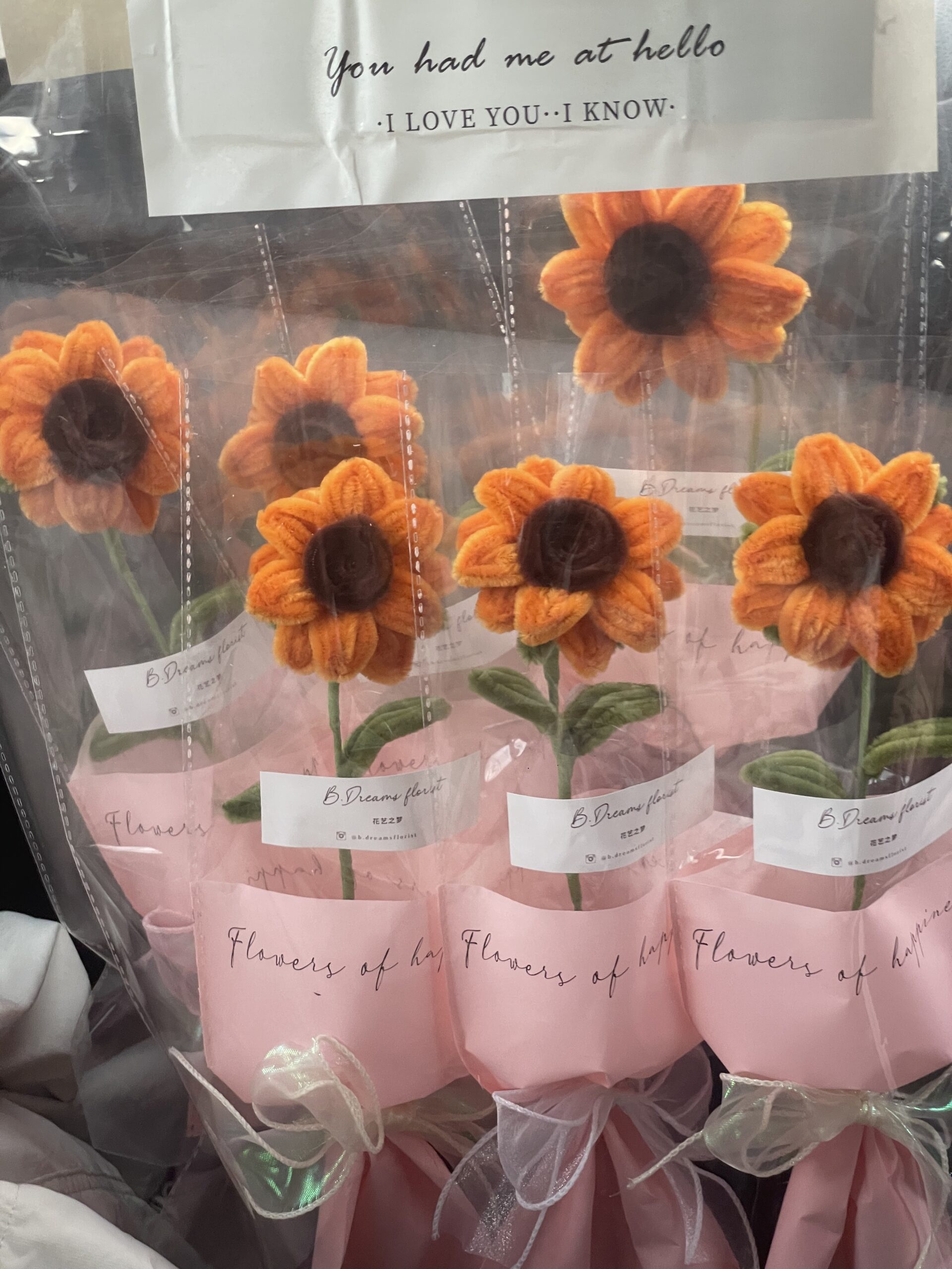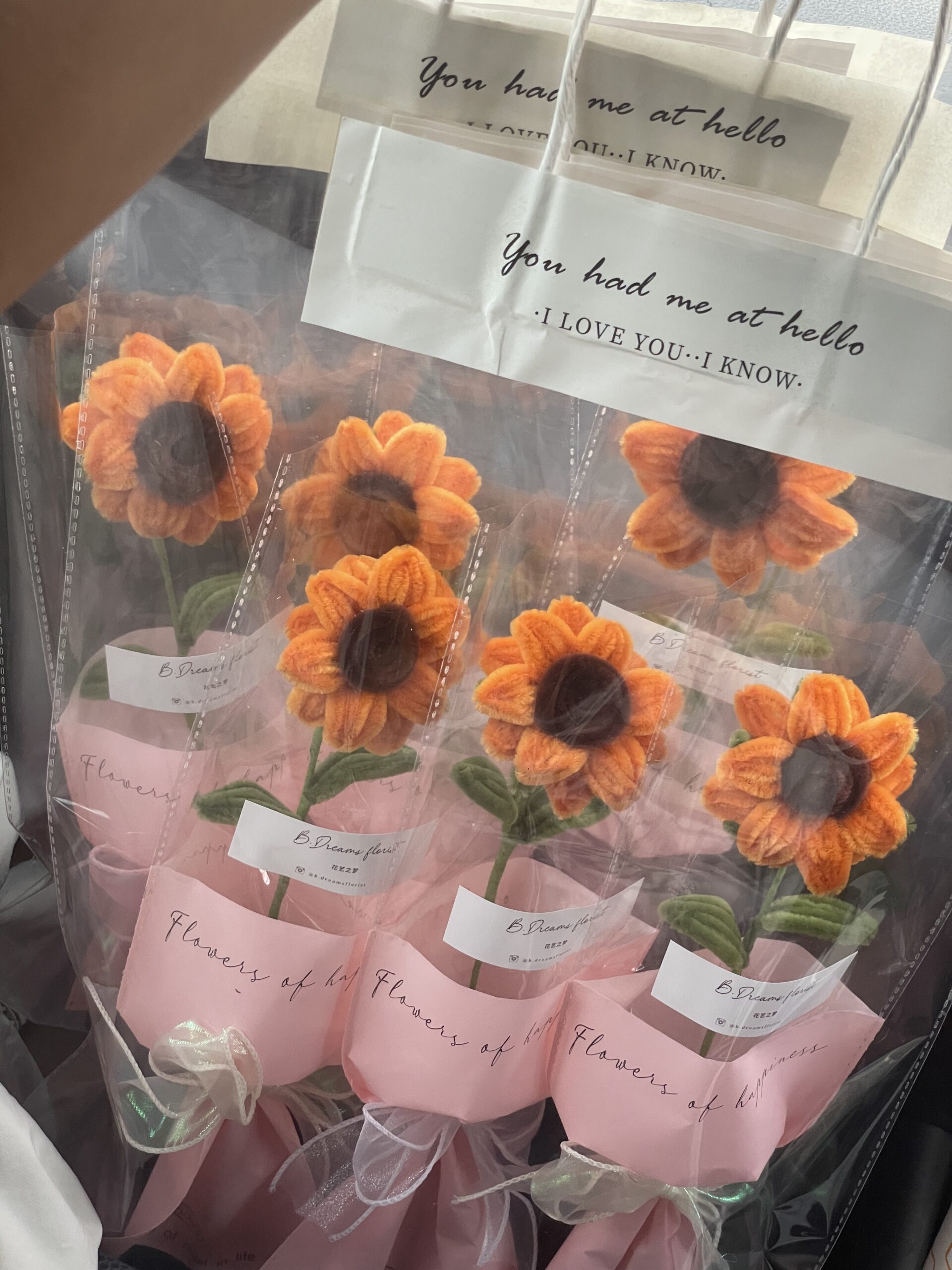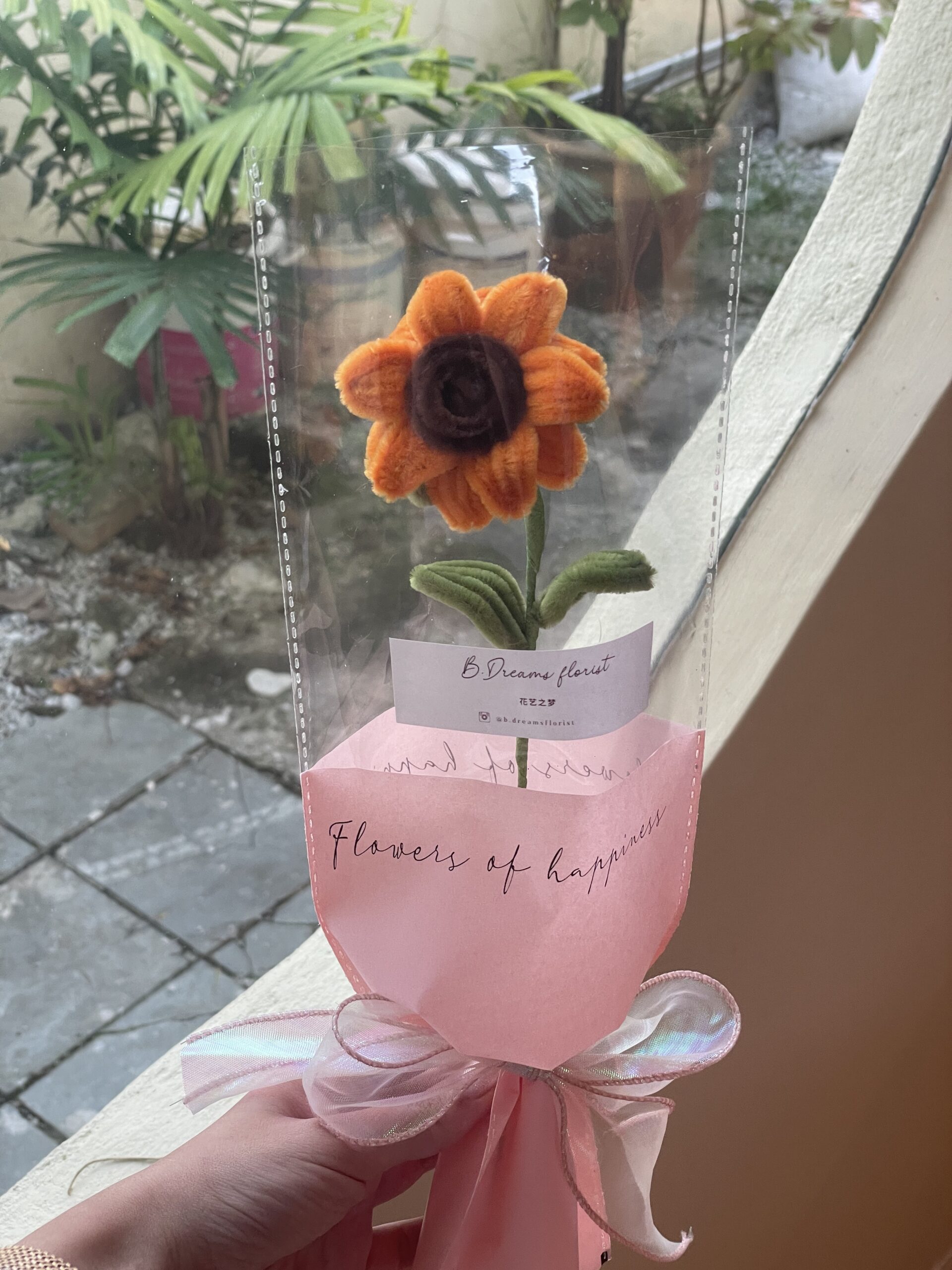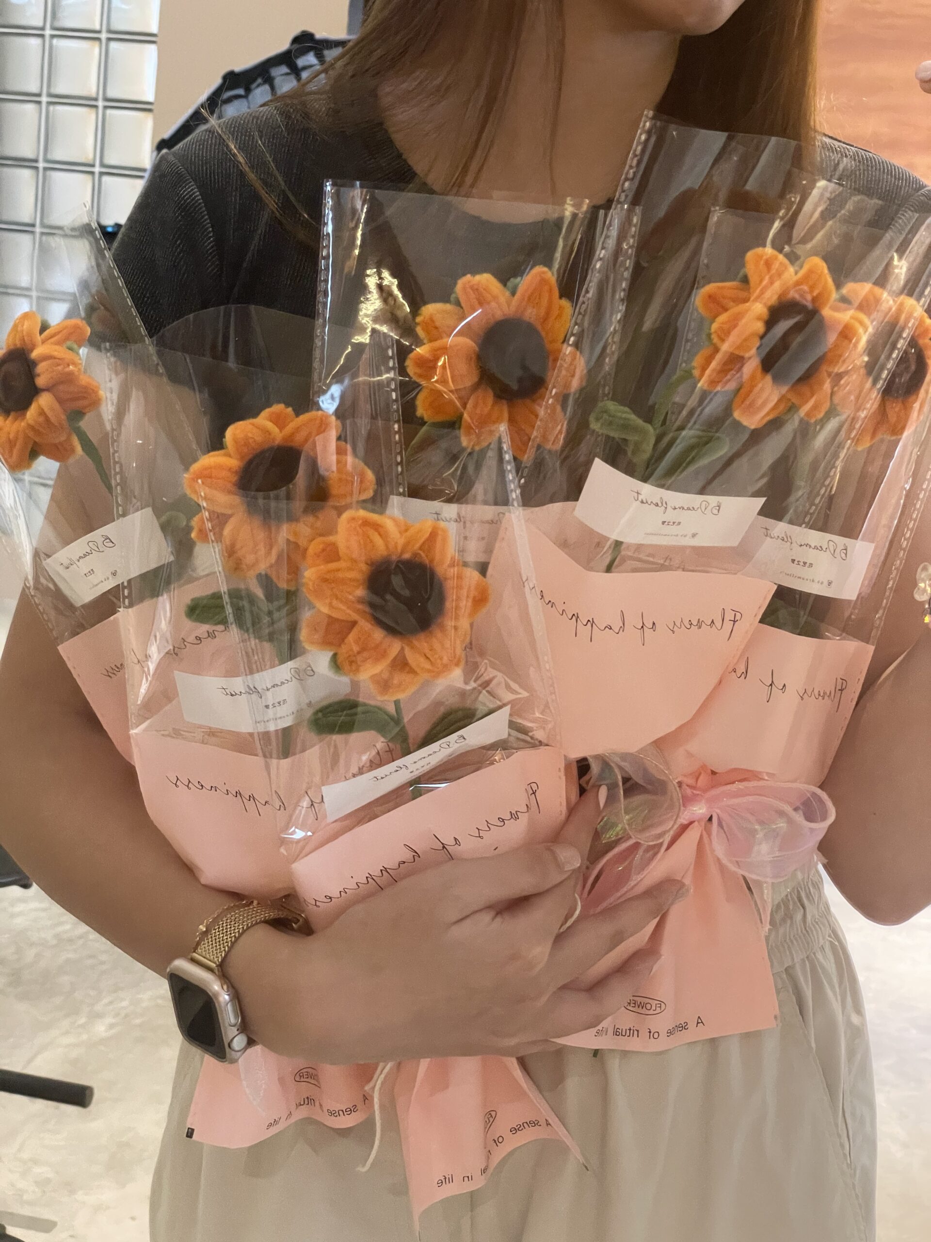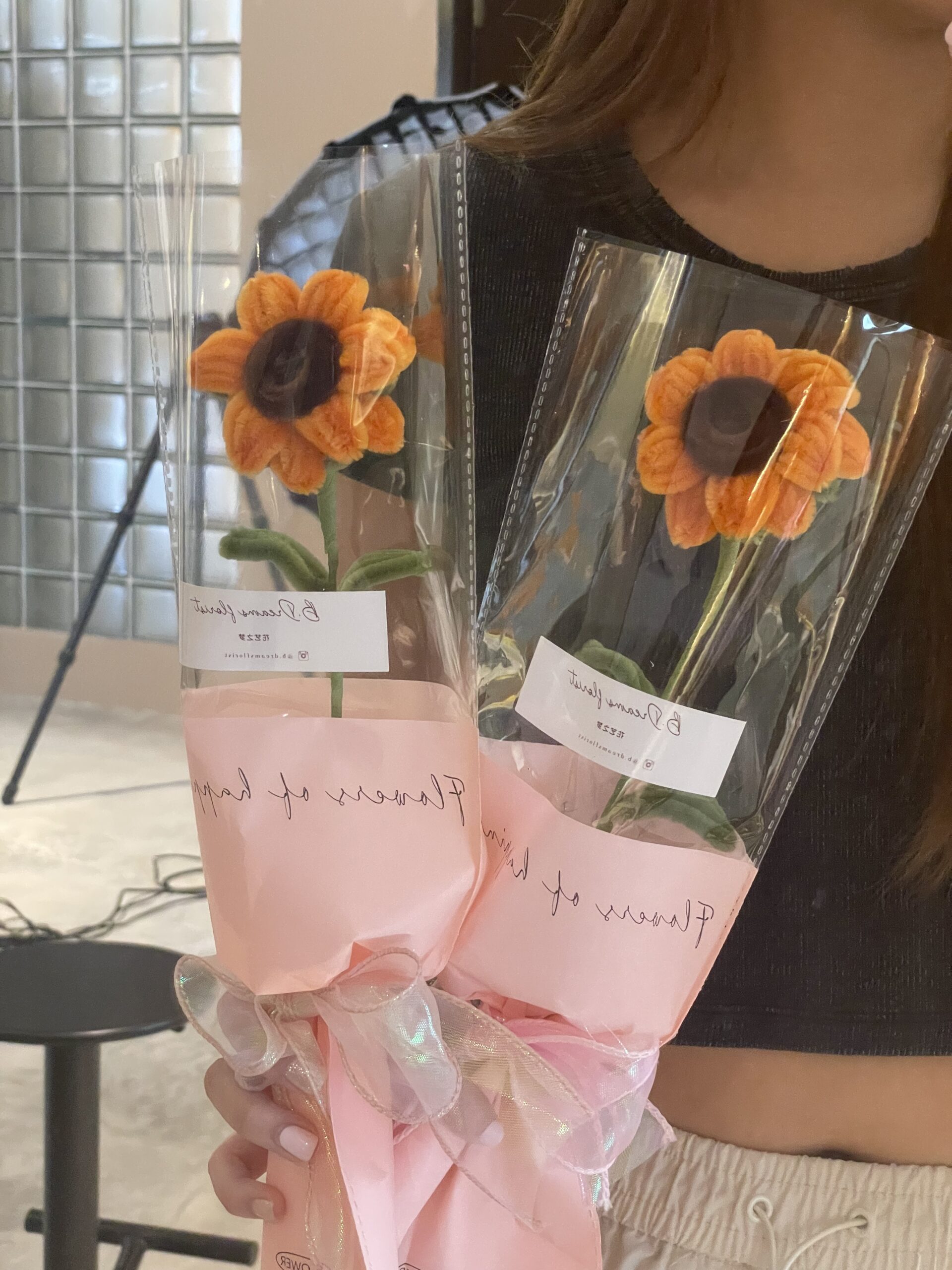 以明亮太阳花搭配扭扭棒设计,象征阳光、希望与热情初心。造型活泼可爱,适合生日、毕业或送给充满正能量的她。