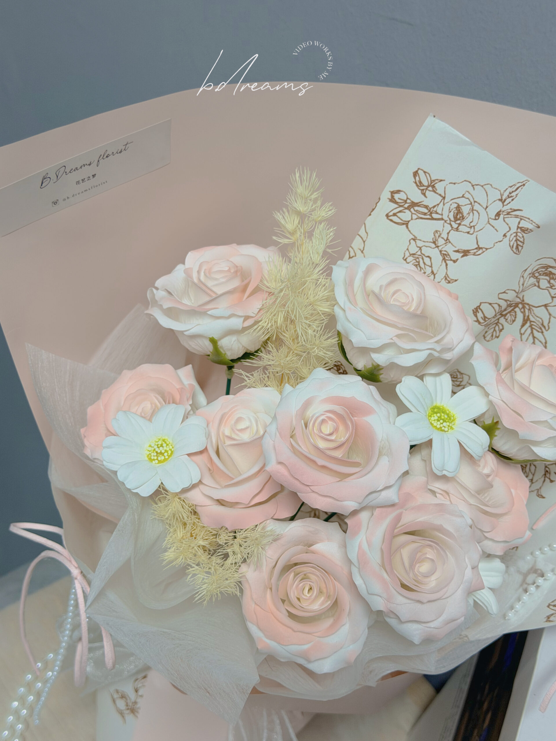 Featuring soft pink soap flowers with a dreamy, bubbly aesthetic, this bouquet embodies sweetness and gentle affection — perfect for romantic gifting or any heartfelt occasion.