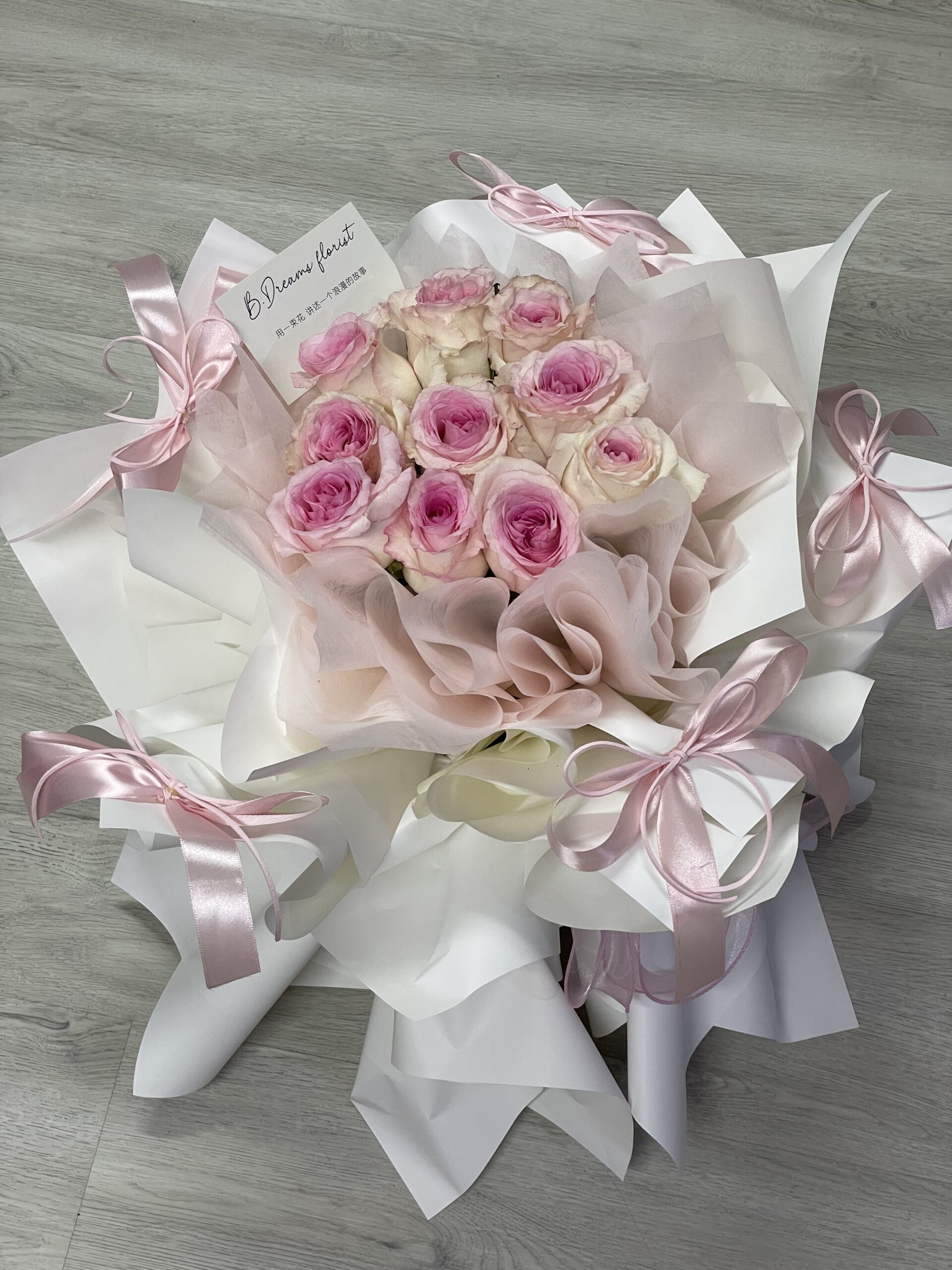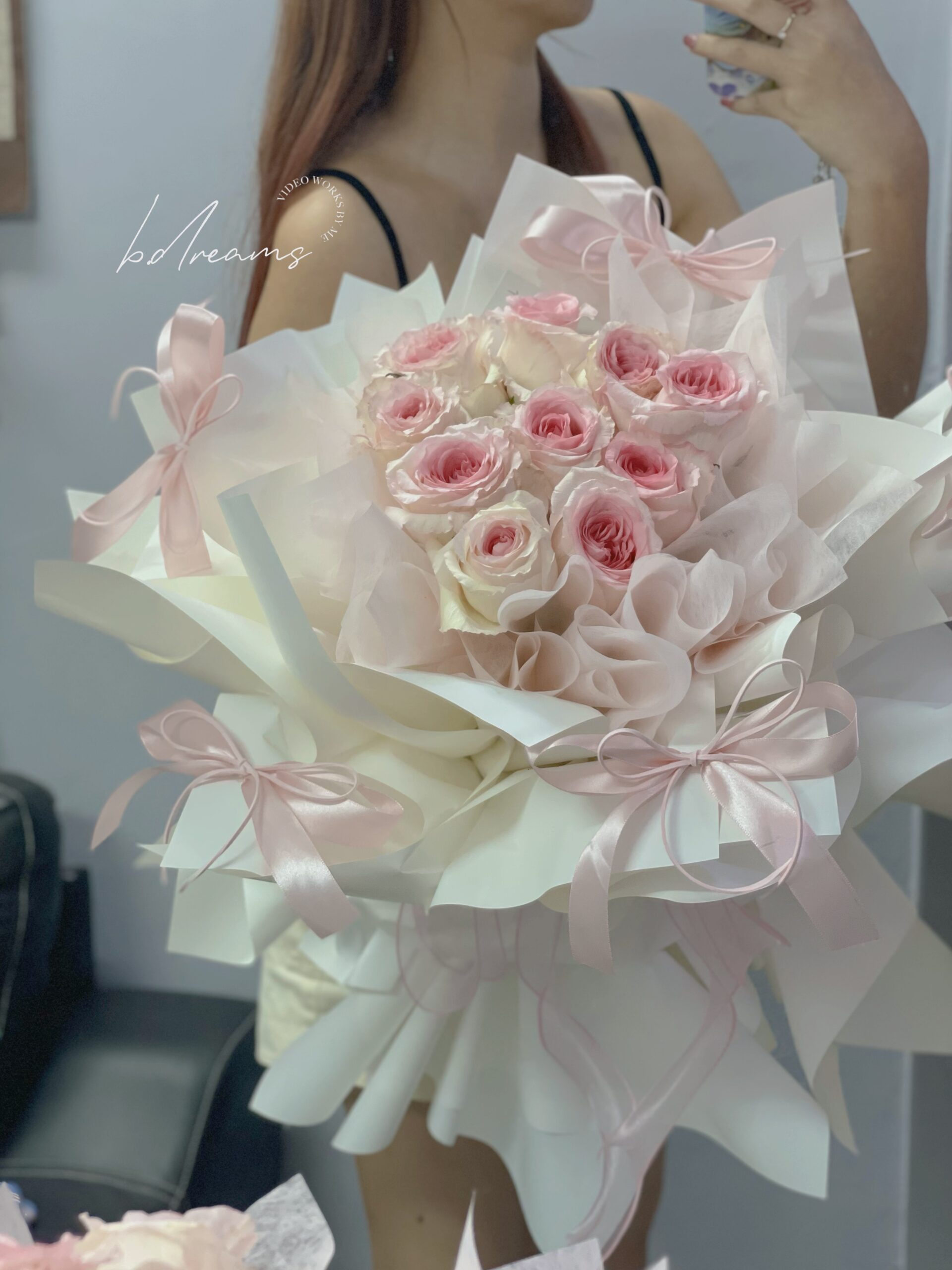 Featuring graceful pink and white blooms arranged like a dancing ballerina, this bouquet embodies elegance and romance — perfect for weddings, birthdays, or heartfelt expressions of love.